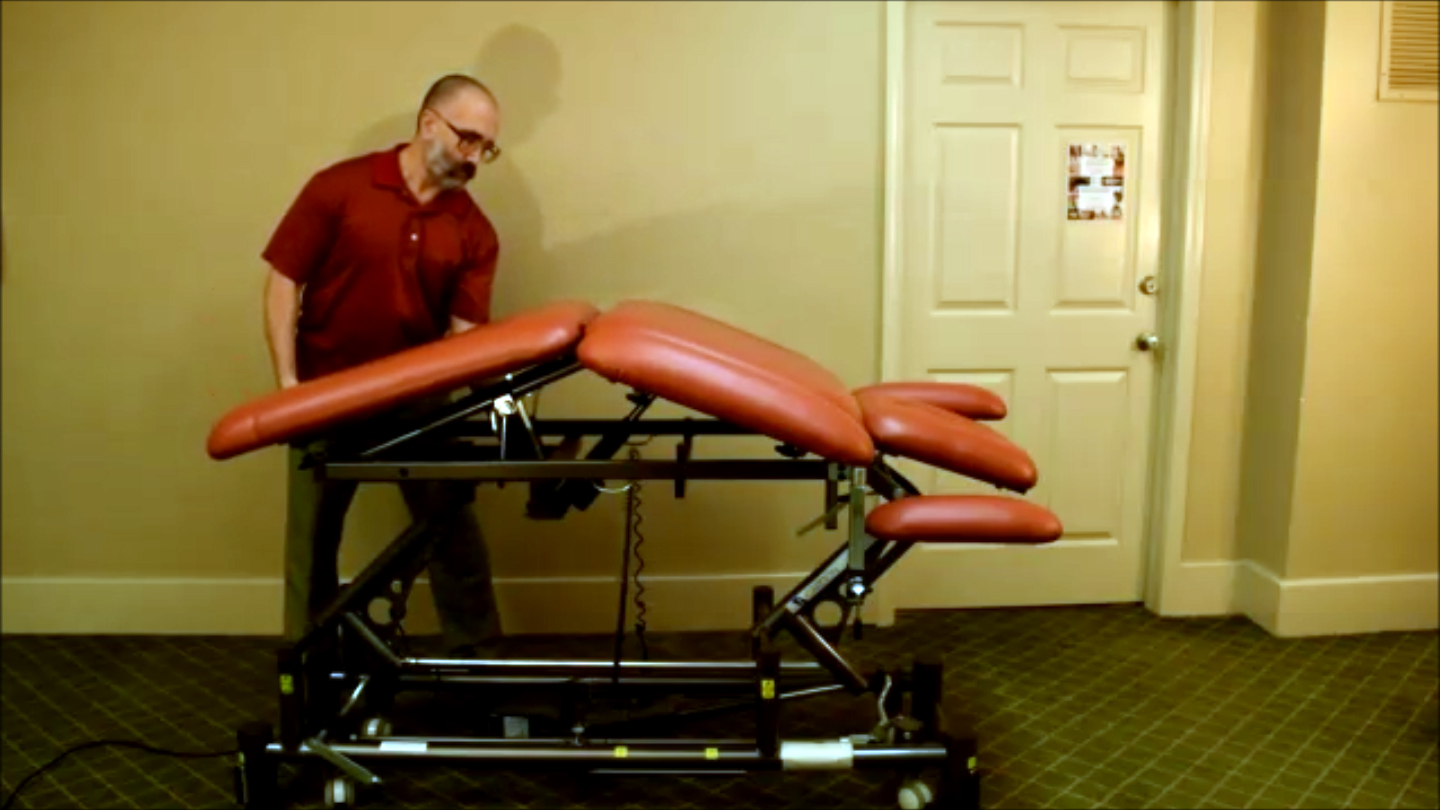 Four adjustable sections (head, middle body, arms, and leg sections) give the therapist accurate positioning of body throughout all phases of therapy. The head section lowers 30˚ and rises to 90˚; the leg section can be raised to nearly 80˚. The mid-body section allows for accurate positioning of the spine in controlled inward or side curvatures. Adjusting each section independently or in combination provides comfort and accurate body positioning necessary for muscle energy, muscle stretching techniques, and enhanced treatment of different body parts.